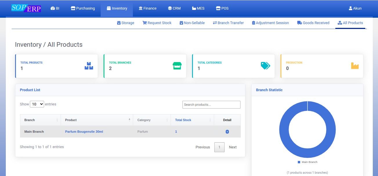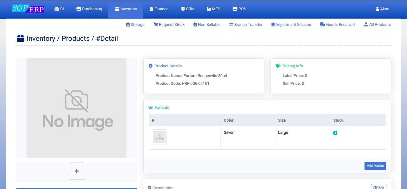 Untuk melihat rincian produk lebih lengkap, klik All Produk pada menu Inventory