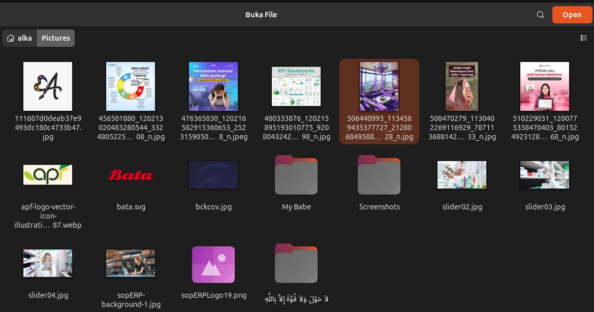 Media File akan terbuka untuk memilih Gambar. Pilih dan cari gambar yang ingin diunggah
