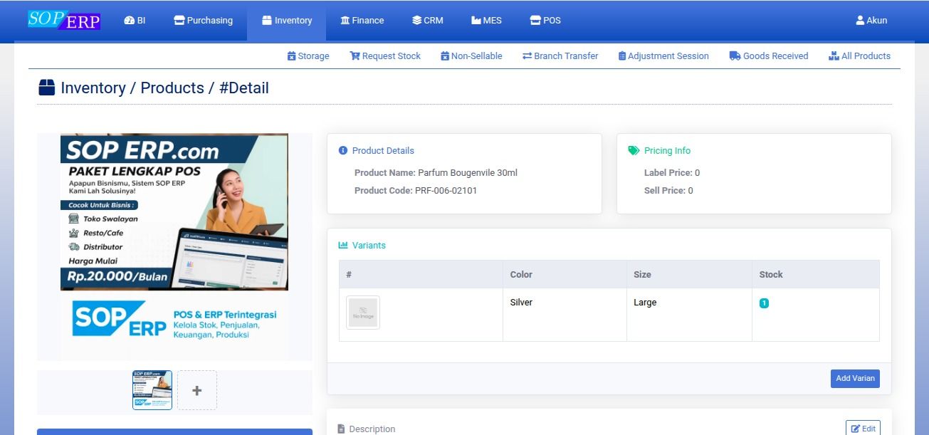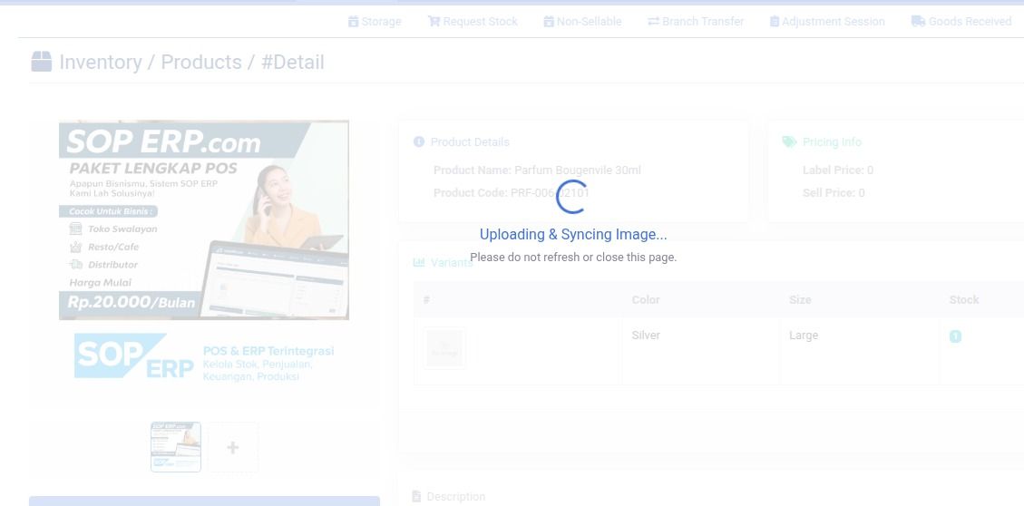 Untuk menambahkan Gambar pada sebuah produk, klik tombol + yang terletak di bawah gambar produk