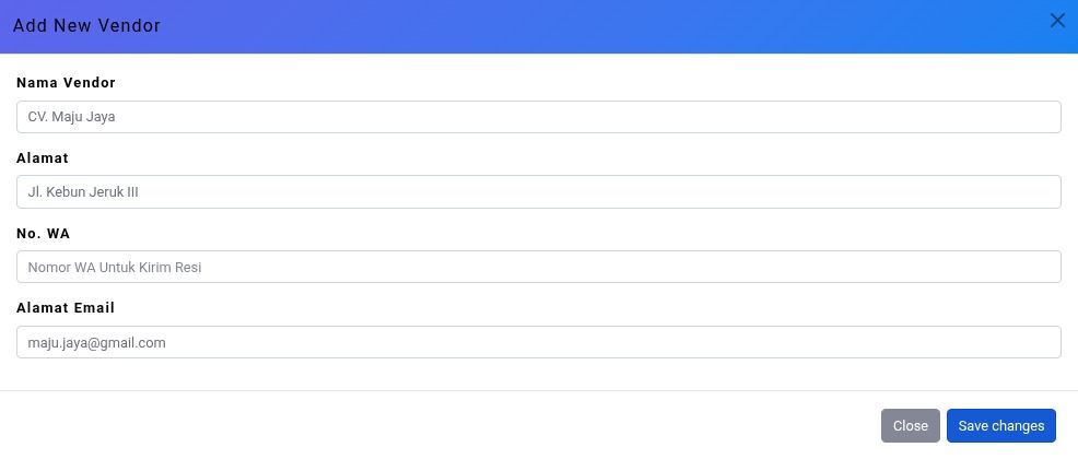 Sebuah jendela form pengisian baru akan terbuka. Isi berdasarkan vendor terkait.