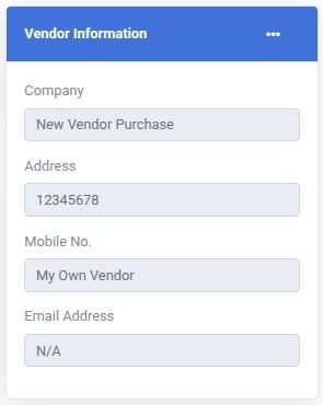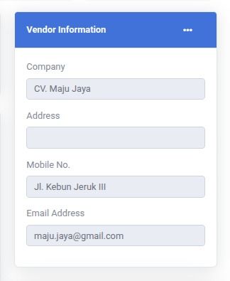 Vendor yang dipilih akan ditampilkan pada Vendor Information