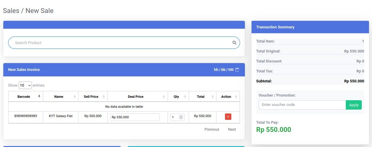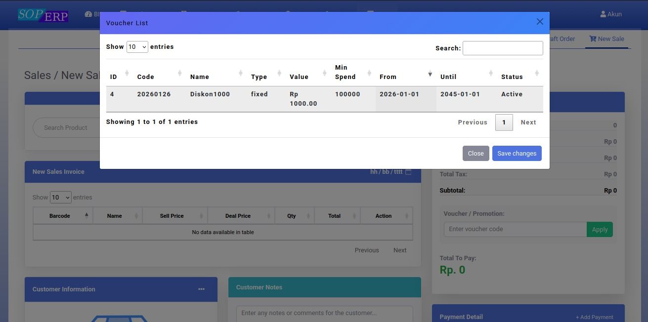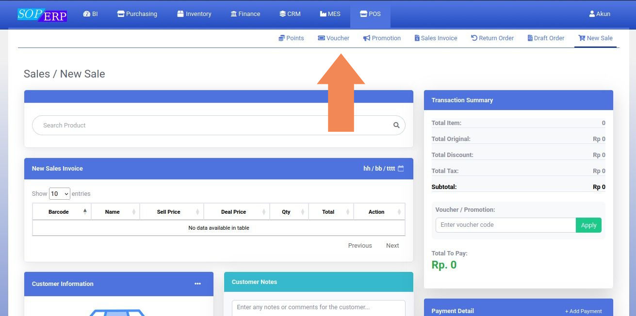Lihat Daftar Voucher dengan meng-klik submenu Voucher pada saat masih di halaman New Sales